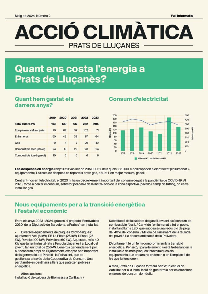 Després de l’estrena d’aquesta proposta el passat mes de novembre (recupera aquí el primer butlletí), en aquesta ocasió, els veïns i veïnes han rebut, juntament amb el Safareig, diverses informacions sobre la transició energètica que està fent el municipi i un seguit de recomanacions per fer front a les altes temperatures dels propers mesos.