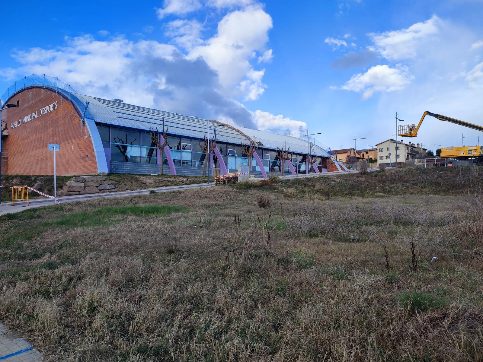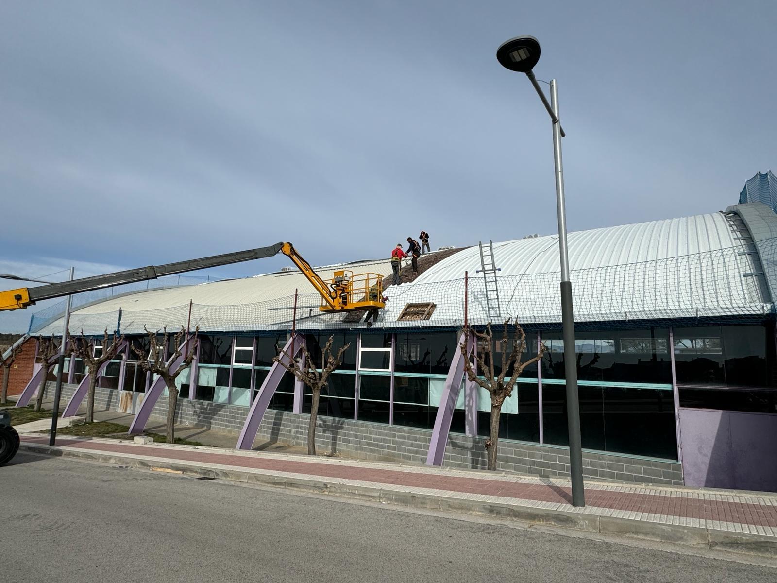En el cas del Pavelló i de la Sala Polivalent, les obres per aconseguir aquests avenços a nivell energètic van acompanyades d’una millora de la coberta de l’edifici. Pel que fa al pavelló, s’està construint una teulada a sobre de l’actual amb l’objectiu de prevenir goteres i millorar l’aïllament tèrmic, mentre que, en el cas de la Sala Polivalent es preveu retirar l’amiant per convertir-la en una construcció lliure de fibrociment.