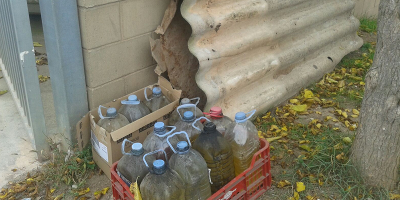 Restes d’uralita i garrafes amb líquids desconeguts abandonats fora d’horari d’obertura a les portes de la Deixalleria municipal