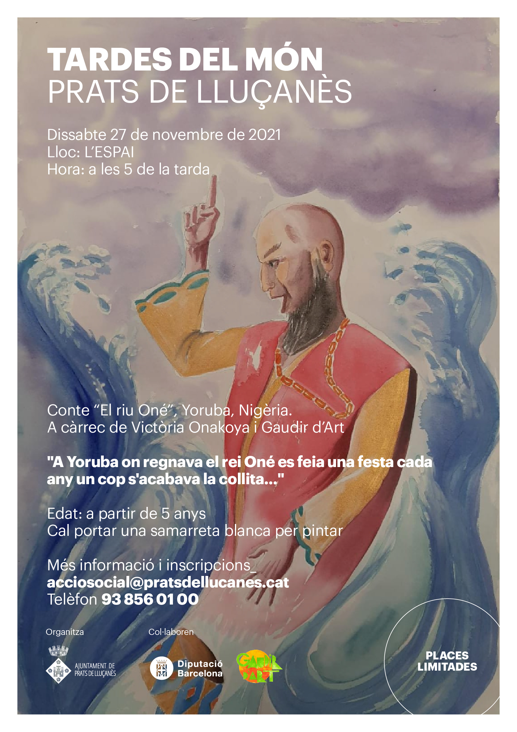 La primera sessió serà el 27 de novembre a les 5 de la tarda a l’Espai. S’explicarà el conte de Nigèria “El riu Oné”, Yoruba i anirà a càrrec de Victòria Onakoya i Gaudir d’Art. Està destinat a infants a partir de 5 anys i al taller caldrà portar una samarreta blanca per pintar.