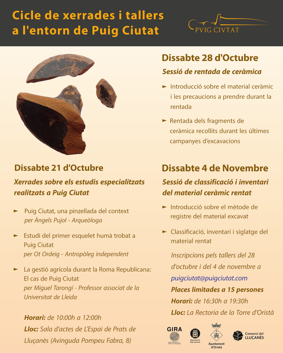 21/10/2023 a les 10:00 fins a les 12:00 Xerrada sobre els estudis especialitzats realitzats a Puig Ciutat