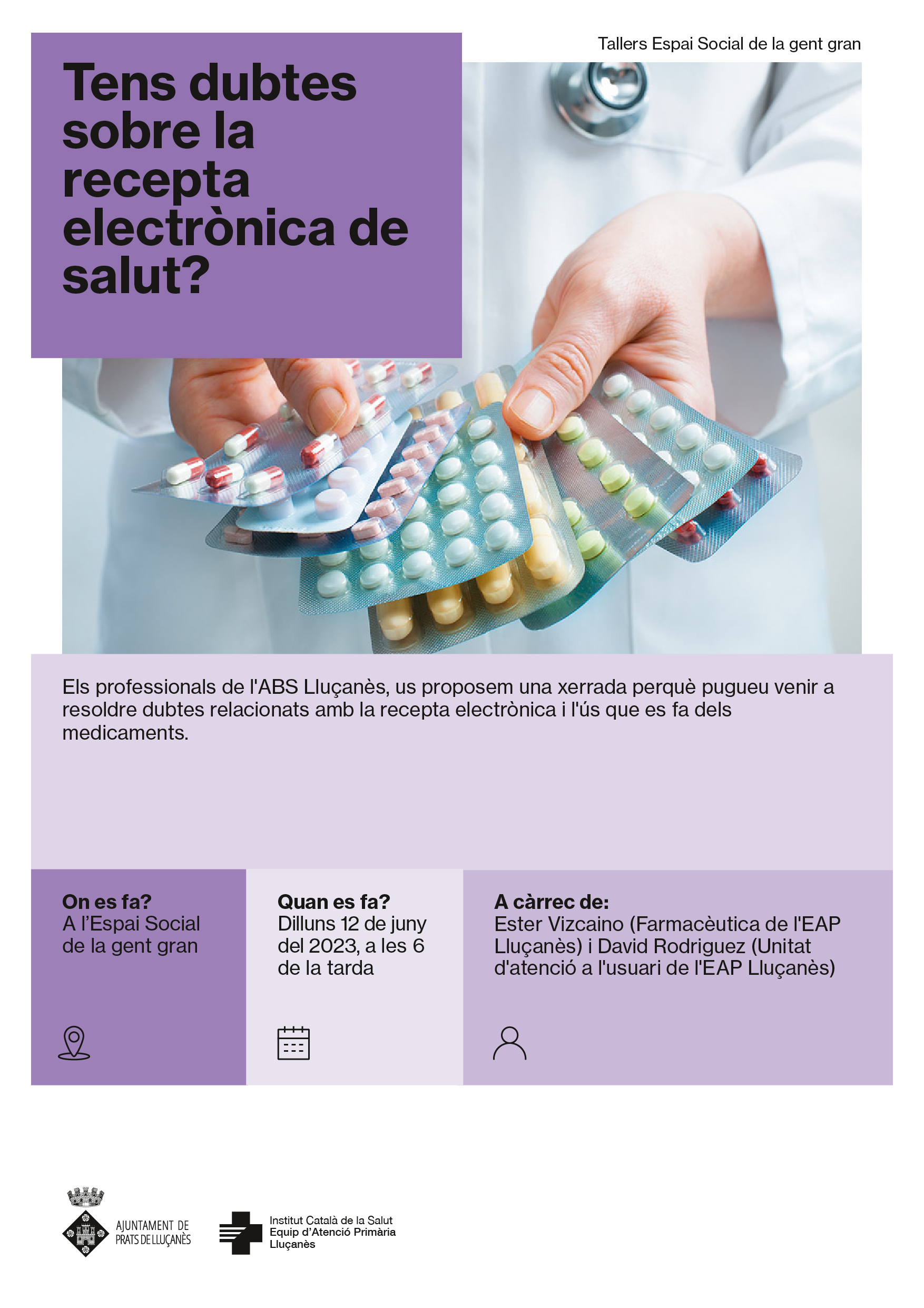 09/06/2023 a les 08:00 fins a les 17:00 Tens dubtes relacionats amb el funcionament de la recepta electrònica i l’ús dels medicaments?