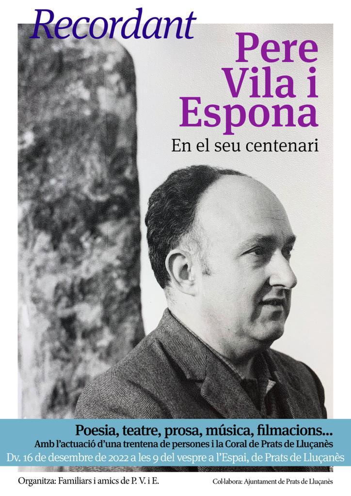 Prats de Lluçanès recorda a les 9 del vespre a l'Espai, el poeta i dramaturg Pere Vila i Espona "Peret Siller" amb un acte commemoratiu del centenari del seu naixement, organitzat per familiars i amics del poeta.