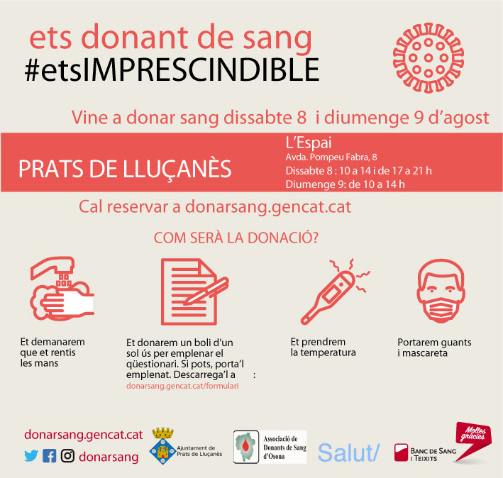 25/08/2020 a les 20:00 fins a les 22:00 Reunió de govern. Ajuntament de Prats de Lluçanès, Passeig del Lluçanès, 08513 Prats de Lluçanès, Barcelona, España