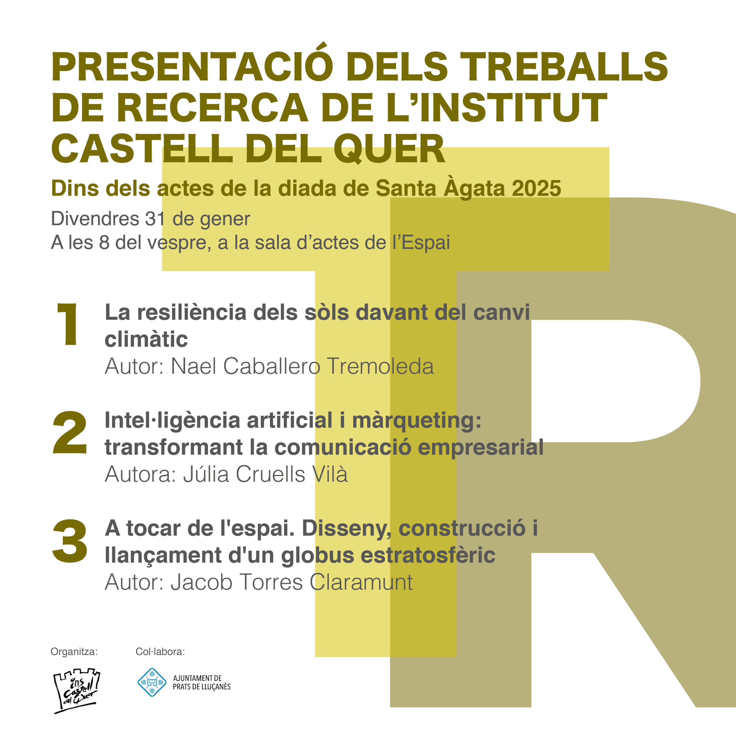31/01/2025 a les 20:00 fins a les 21:00 Presentació dels Treballs de Recerca de l’Institut Castell del Quer
