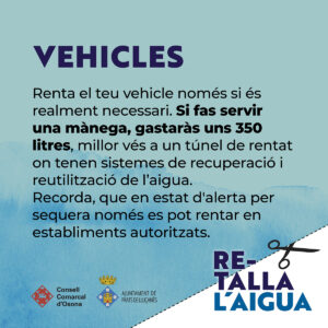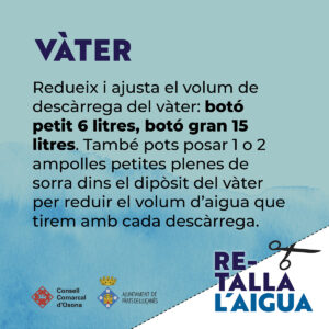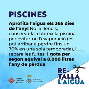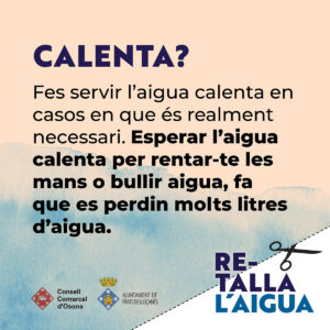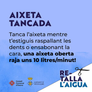 La situació d’extrema sequera que pateix el país ens obliga a ser molt més curosos amb el consum d’aigua. A continuació, l’Ajuntament de Prats de Lluçanès i el Consell Comarcal d’Osona oferim 10 consells per a l’estalvi d’aigua.
