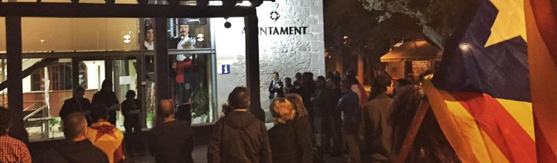 La lectura del manifest, que s’ha fet de forma conjunta per Peraire, Canal i Vila, ha acabat amb el cant d’Els Segadors per part de totes les persones assistents i amb crits d’independència.