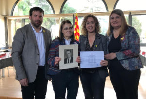 A la seva arribada al municipi, la consellera ha visitat l’Ajuntament de Prats de Lluçanès, on ha signat al llibre d’honor del consistori. Capella també ha fet entrega del document de nul·litat a Maria Carme Canal del judici sumaríssim que va condemnar a cadena perpètua el seu avi, Francesc Canal Juvanteny, alcalde de Prats de Lluçanès, l’any 1937.