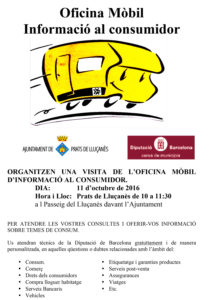 L’Ajuntament de Prats de Lluçanès està adherit al programa OPIC (OFICINA PROVINCIAL D’INFORMACIÓ AL CONSUMIDOR) de la Diputació de Barcelona, el qual preveu cada 3 mesos la visita de l’Oficina Mòbil a la nostra població.