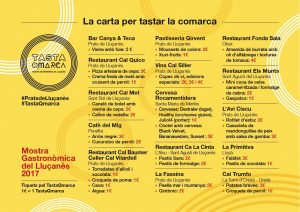El TastaQmarca serà el plat fort de la programació d’aquest cap de setmana. Després de la seva recuperació, l’any passat, enguany, s’amplia l’oferta d’establiments que hi participaran. Els restaurants de la comarca prepararan més de 20 propostes culinàries en format tastet, a preus assequibles d’entre 1 i 4 euros. A partir de les 8 del vespre i fins a la mitjanit, el passeig del Lluçanès i l’espai Chill out dels Jardins de Cal Bach, s’ompliran del bon menjar, regat amb cervesa del Lluçanès i vins de DO catalanes.