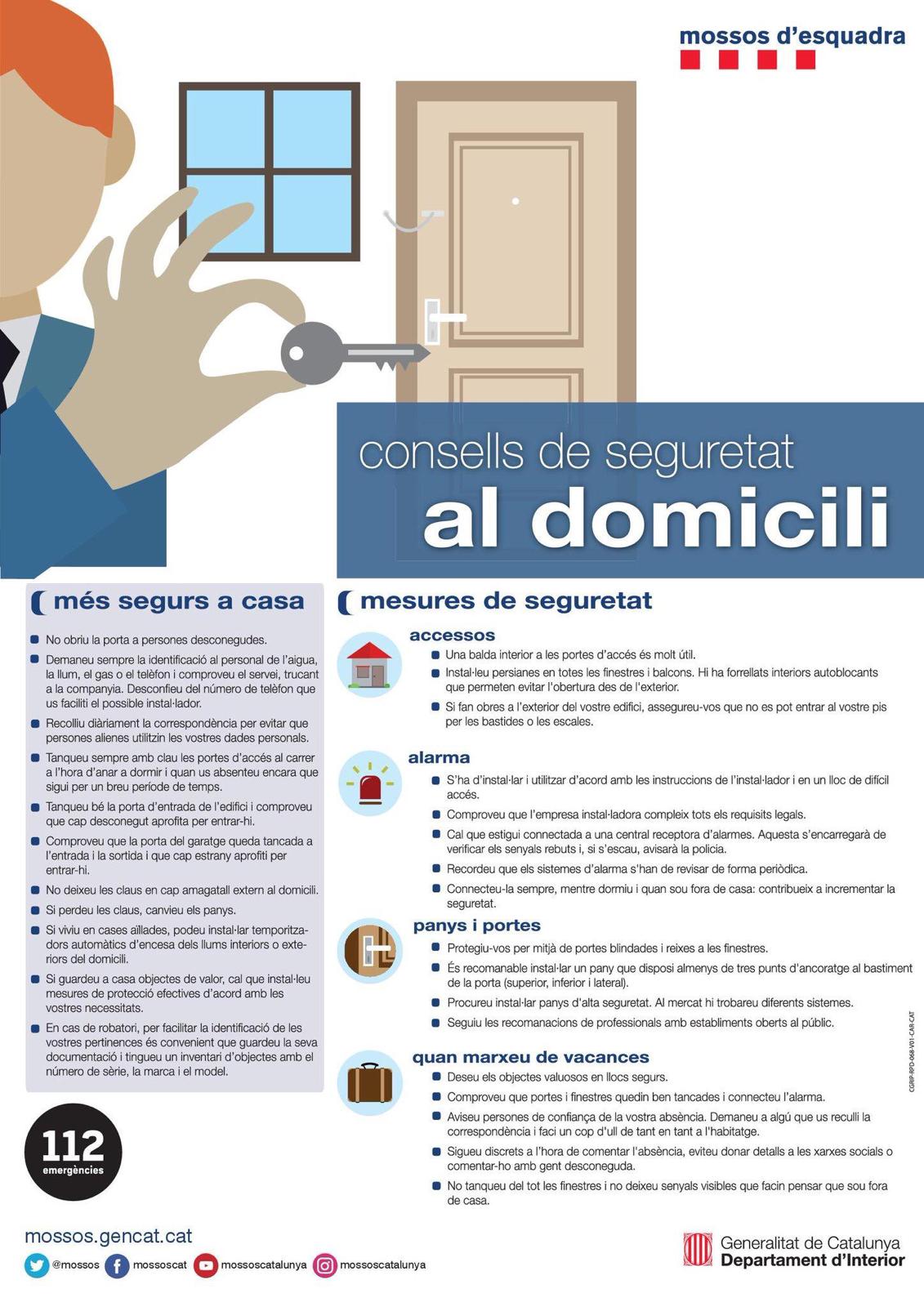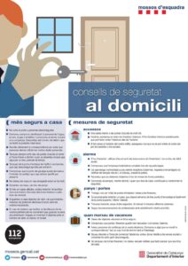 En aquest enllaç hi trobareu un seguit de consells de seguretat dels Mossos d’Esquadra per minimitzar el risc de robatoris en domicilis.