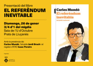 L’exconseller de Justícia, Carles Mundó serà a Prats el proper diumenge 26 de gener per presentar el llibre “El referéndum inevitable”. Mundó escriu el primer testimoni del judici, la primera anàlisi de la sentència i una visió constructiva del present i el futur del sobiranisme.