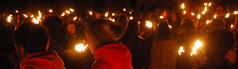 Assistents a la marxa de torxes iniciada a la plaça Vella i que va arribar fins a la plaça de l’Església