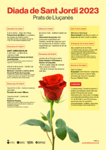 Prats de Lluçanès celebra la diada de Sant Jordi 2023 amb una àmplia proposta d’activitats culturals i tradicionals, durant la segona quinzena del mes d’abril. Els actes s’han organitzat des de l’àrea de Cultura i Festes de l’Ajuntament de Prats de Lluçanès, de la mà dels centres educatius del municipi, la Unió de Botiguers i Comerciants de Prats i Òmnium Cultural.