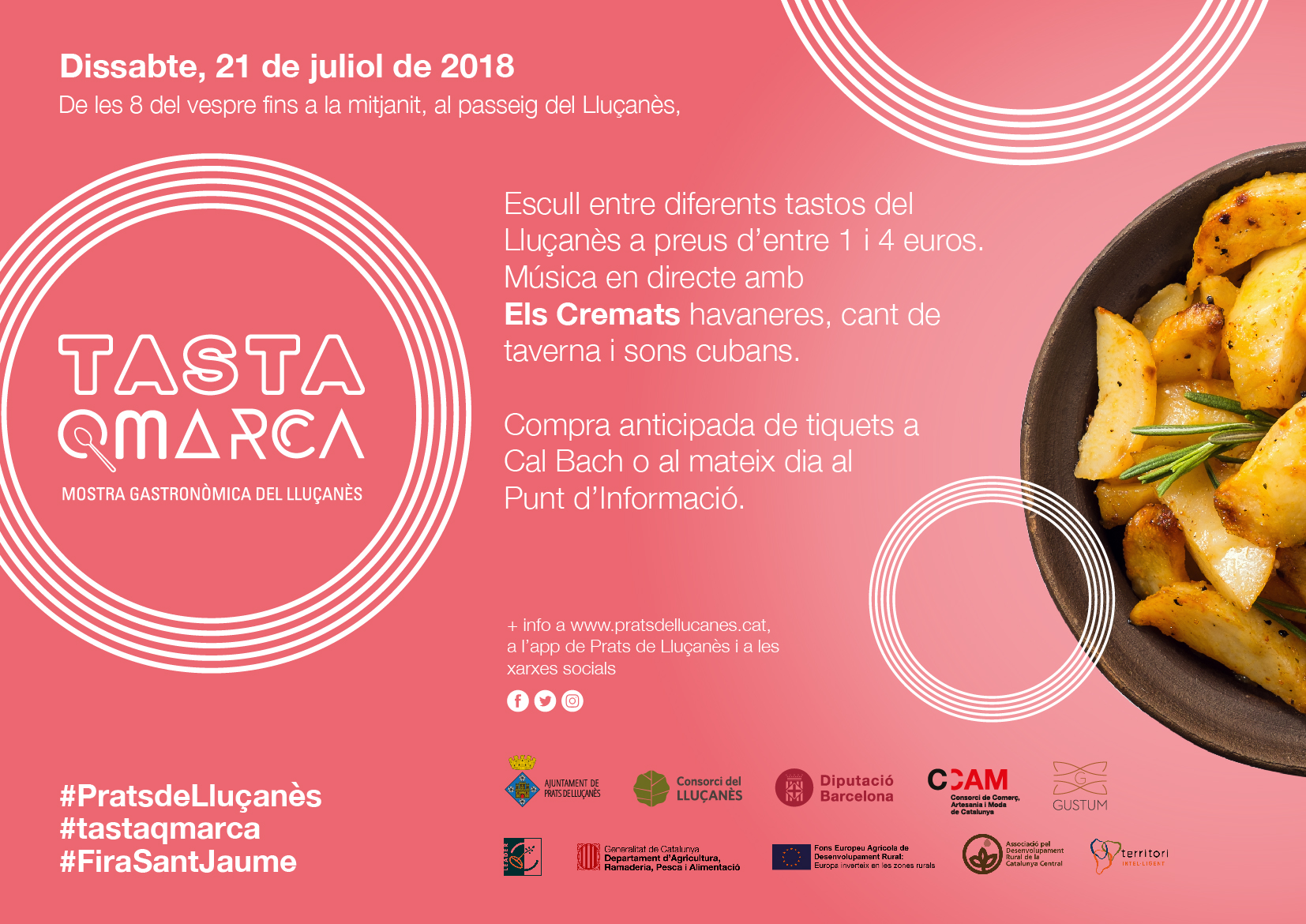 Els actes engegaran el dissabte 21 de juliol, a les 20 hores al passeig del Lluçanès amb la tercera edició del TastaQmarca. La mostra gastronòmica permetrà degustar una vintena d’especialitats diferents d’establiments del Lluçanès, a preus d’entre 1 i 4 euros, fins ben entrada la mitjanit. Els Cremats, grup d’havaneres, cant de taverna i sons cubans, hi posaran música en directe i ambient.