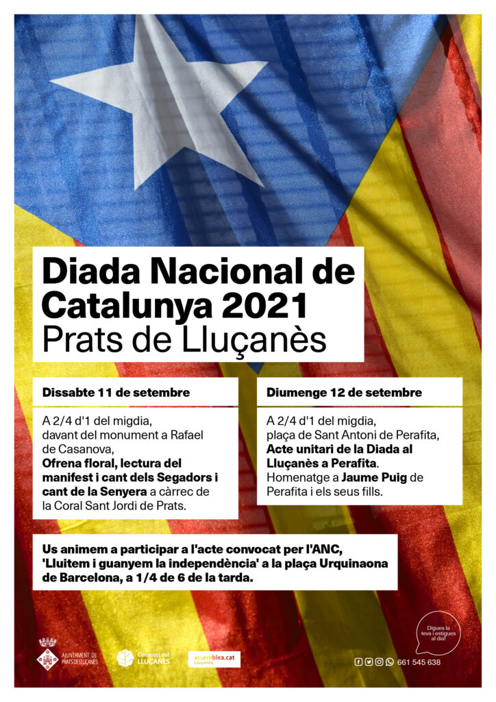 Dissabte vinent és 11 de setembre i Prats se suma a la celebració de la Diada Nacional de Catalunya. A dos quarts d’una del migdia, se celebrarà l’ofrena floral al monument a Rafael de Casanova, acompanyada de la lectura del manifest. L’acte clourà amb la cantada del Cant dels Segadors i el Cant de la Senyera a càrrec de la Coral Sant Jordi de Prats de Lluçanès.
