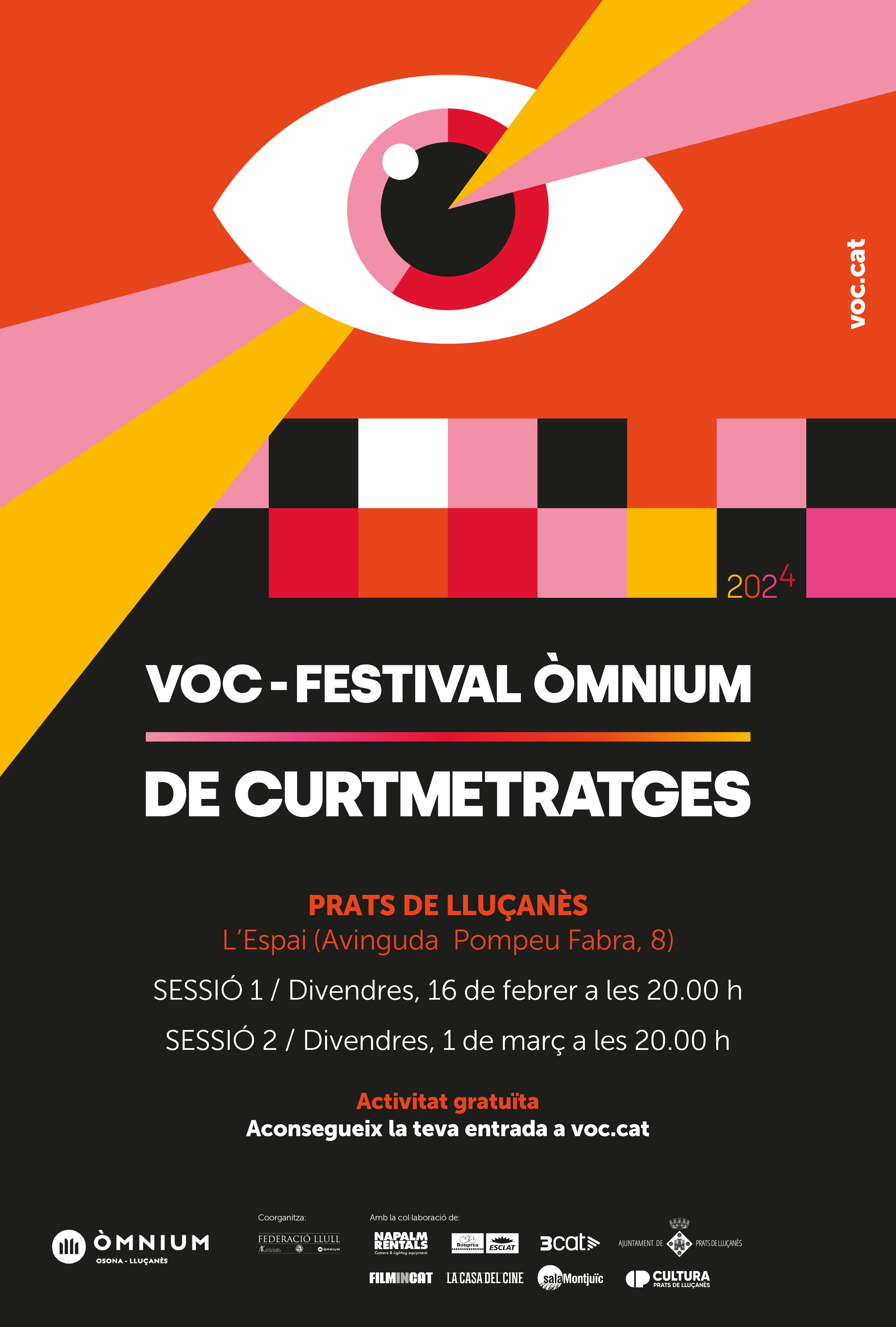 El VOC – Festival Òmnium de Curtmetratges arriba a Prats de Lluçanès amb dues sessions que tindran lloc a l’Espai els propers divendres 16 de febrer i 1 de març a les 8 del vespre. Enguany, la proposta tindrà el municipi com a única localització i centralitzarà tot el públic d’Osona i el Lluçanès.