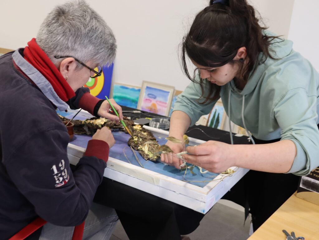 “Parelles Artístiques, experiències creatives per la salut mental” utilitza l’art com a eina terapèutica que ajuda a les persones a millorar el seu benestar emocional, facilitant la seva expressió i comunicació i el seu desenvolupament personal. El projecte rep el suport des dels seus inicis de BBVA i Fundació Antiga Caixa Manlleu.