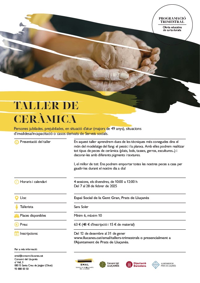 • Preu: 33€/trimestre (15€ material, abonar el 1r dia)