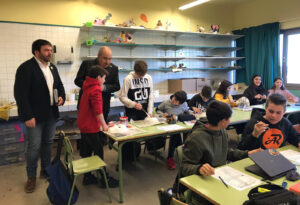 La visita ha començat a les 9 del matí a l’Escola Lluçanès on la directora i algunes mestres han rebut al conseller i tota la comitiva. Al llarg del recorregut han entrat i visitat diverses classes on han vist com treballaven i aprenien els nens i nenes. També han recorregut el pati de l’escola i el menjador.