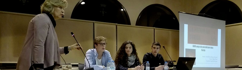 Seguidament, Elisenda Plana, directora de l’Institut, ha explicat que després d’uns anys de realitzar-se una taula rodona a la Biblioteca Municipal en què l’alumnat exposava les seves experiències al llarg del procés de creació d’aquests treballs, s’ha cregut convenient fer un pas més explicar el treball final a tota la població.