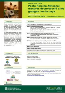 Jornada tècnica sobre la pesta porcina africana: “Mesures de seguretat en les explotacions ramaderes i en la caça”. A 3/4 de 6 de la tarda a l’Espai de Prats de Lluçanès.