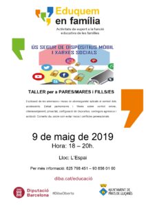 Taller per a pares i fills sobre ús segur de dispositius mòbils i xarxes socials