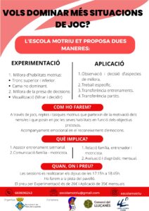 L’Escola Motriu i Esportiva és un nou model de formació esportiva amb l’objectiu de desenvolupar el potencial dels infants a través d’una proposta diversificada de diferents models corporals per tal que puguin experimentar un desenvolupament motriu i emocional òptim durant la seva primera etapa escolar.
