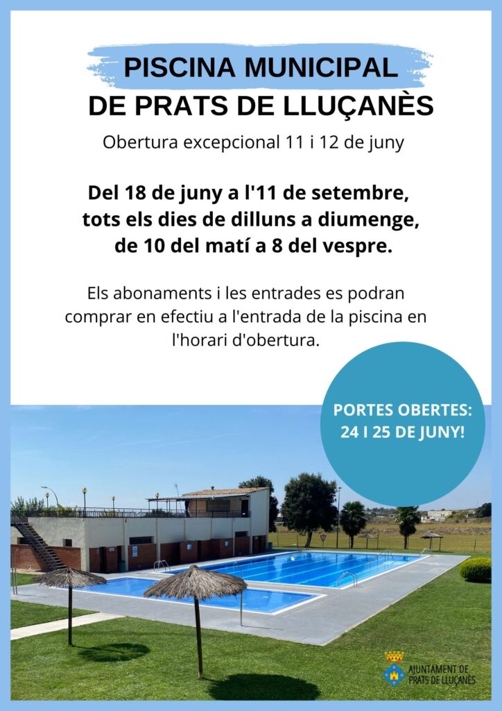 El cap de setmana de l’11 i el 12 de juny s’obrirà la piscina municipal de Prats, com a cap de setmana excepcional.