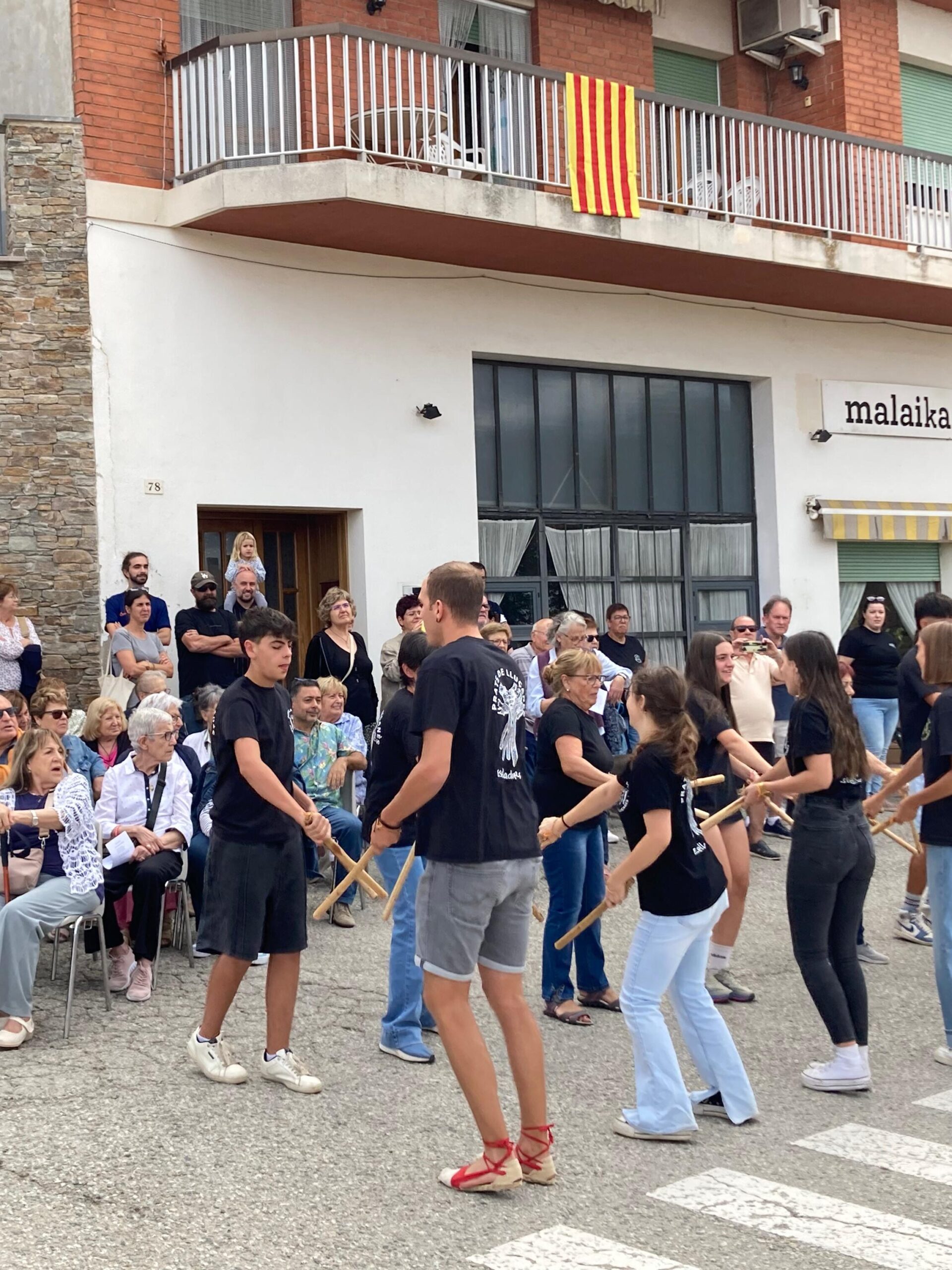 Tot seguit, la commemoració de la Diada Nacional de Catalunya va continuar amb una actuació dels Estelladors de Prats de Lluçanès, que van oferir el seu recital de balls de bastons davant de les desenes de veïns i veïnes que van fer acte de presència a la celebració.