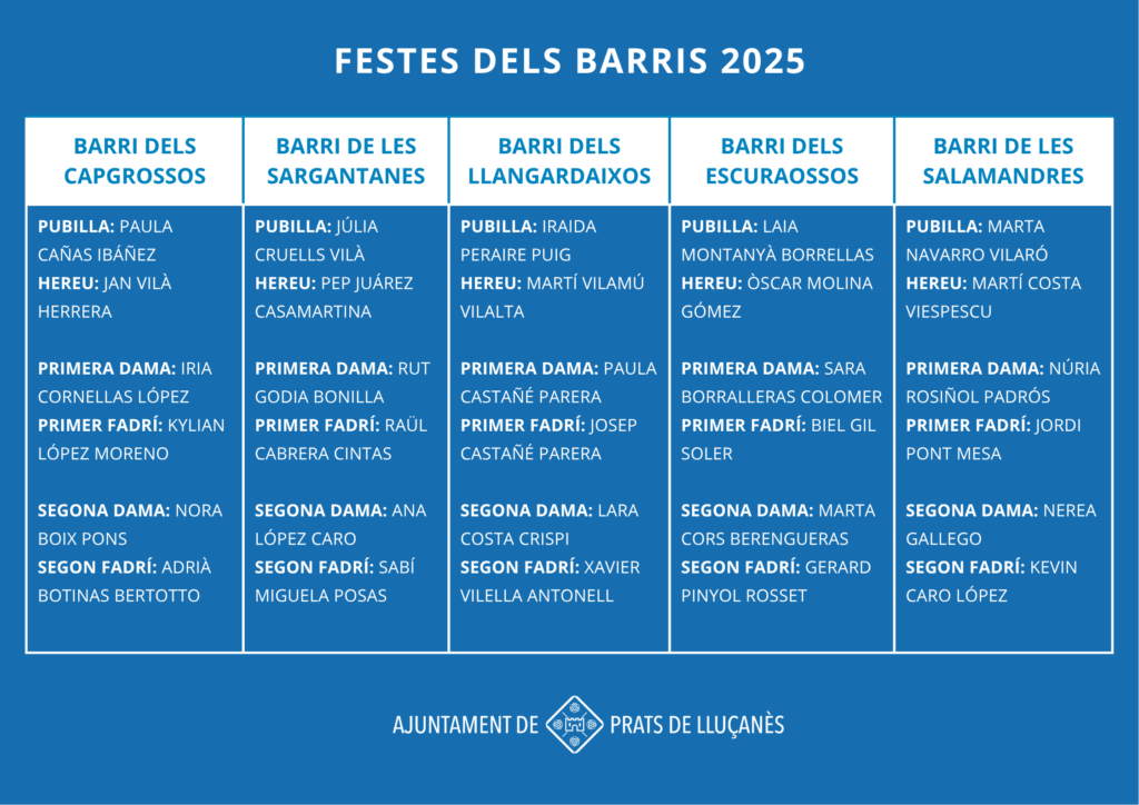 Les pubilles i els hereus dels cinc barris optaran a convertir-se en la pubilla i l’hereu del poble el pròxim 24 de juny a la nit, en les votacions que tindran lloc durant el ball de gala.