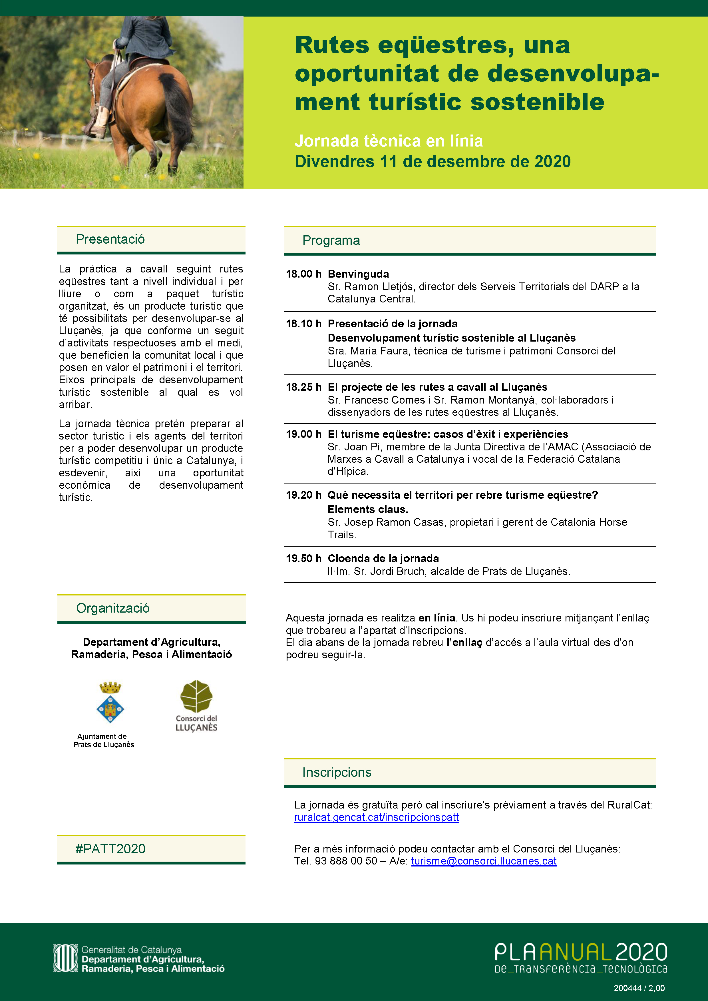 La jornada és gratuïta però cal inscriure’s prèviament a través de RuralCat: ruralcat.gencat.cat/inscripcionspatt.