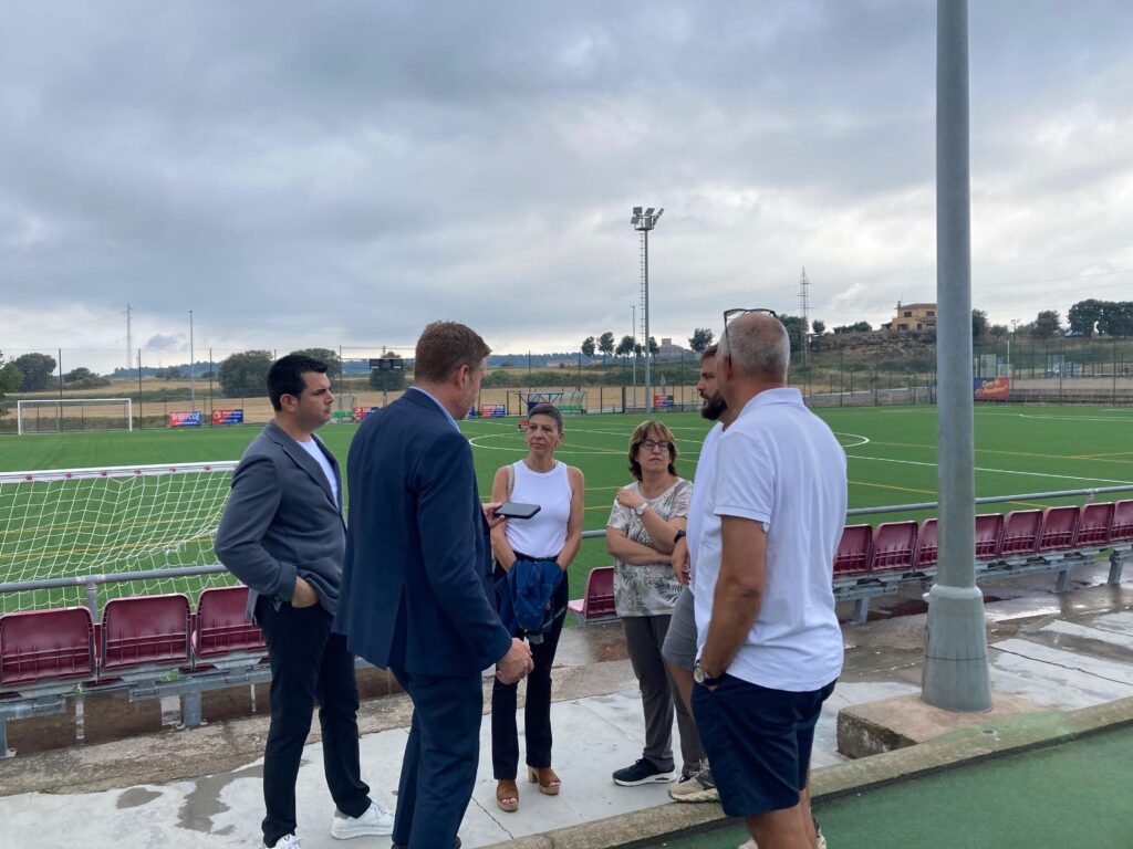 A continuació, els representants de la Diputació van visitar diversos equipaments de la zona esportiva, on s’hi preveuen importants inversions que requeriran suport econòmic i tècnic. Van poder conèixer de prop la recent renovació de la gespa artificial del camp de futbol i un dels projectes que aviat es farà realitat: la instal·lació d’una coberta solar a l’antiga pista de tennis.