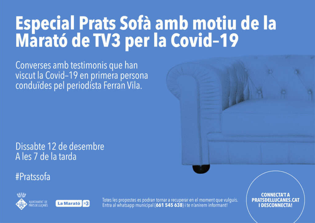 El proper dissabte 12 de desembre, a les 7 de la tarda, s’emetrà una sessió especial Prats Sofà amb motiu de La Marató de TV3 i Catalunya Ràdio per la Covid-19 que se celebrarà diumenge 20 de desembre.