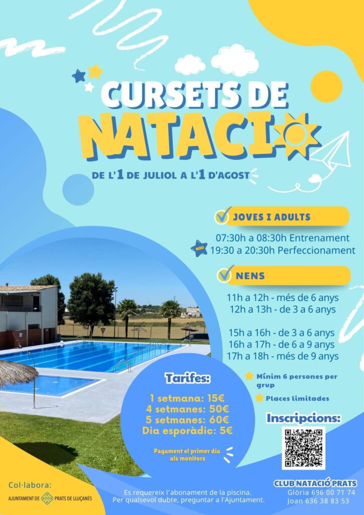 Com és habitual, durant el mes de juliol arriben els cursets de natació organitzats pel Club Natació Prats, que es duran a terme de l’1 de juliol a l’1 d’agost.