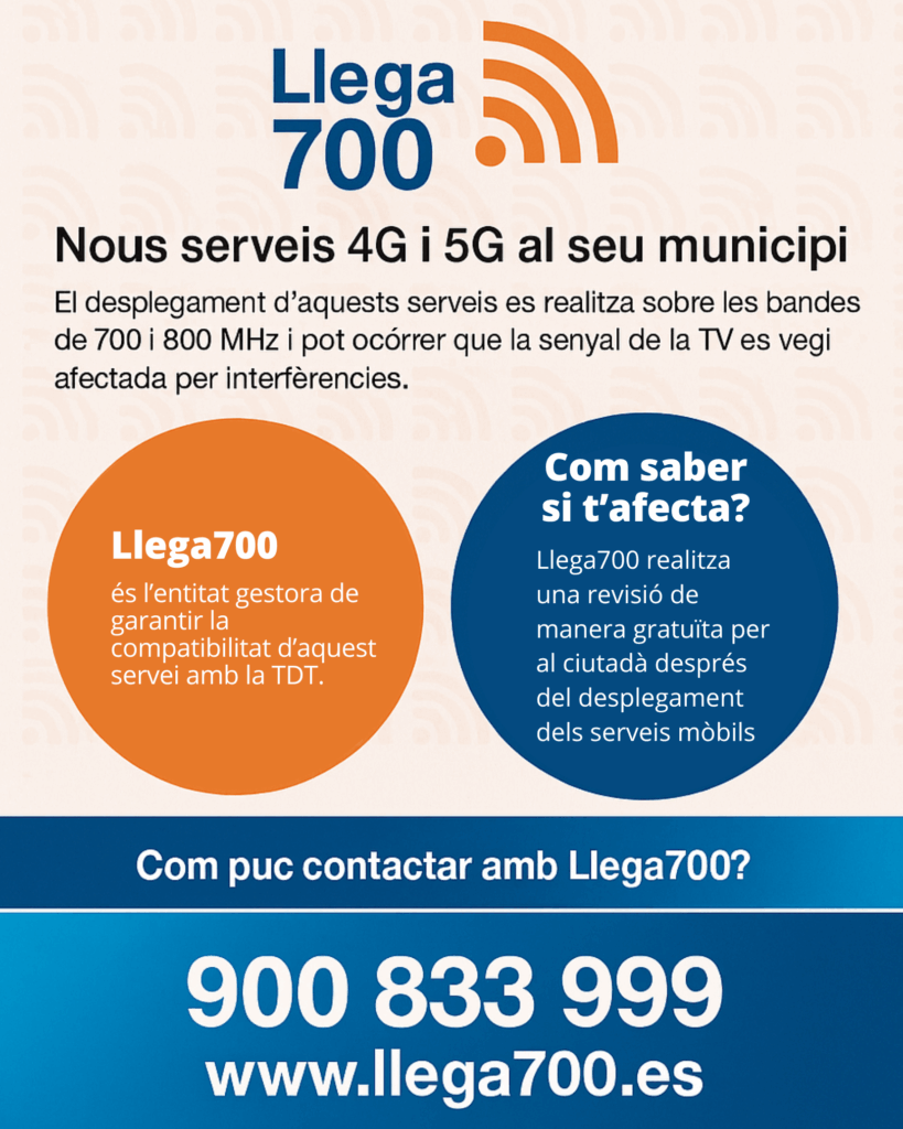 Tot i això, l’activació del servei podria generar incidències puntuals en la recepció dels canals de TDT en determinats punts del poble, ja que es tracta de les mateixes bandes de freqüència que s’utilitzaven fins fa poc per a la televisió.