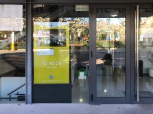 La nova pantalla multimèdia situada a l’entrada de Cal Bach, i visible a l’exterior, ofereix immediatesa informativa i de forma més sostenible, ja que gradualment s’aniran eliminant els cartells impresos a les dependències municipals per ser projectats en la pantalla.