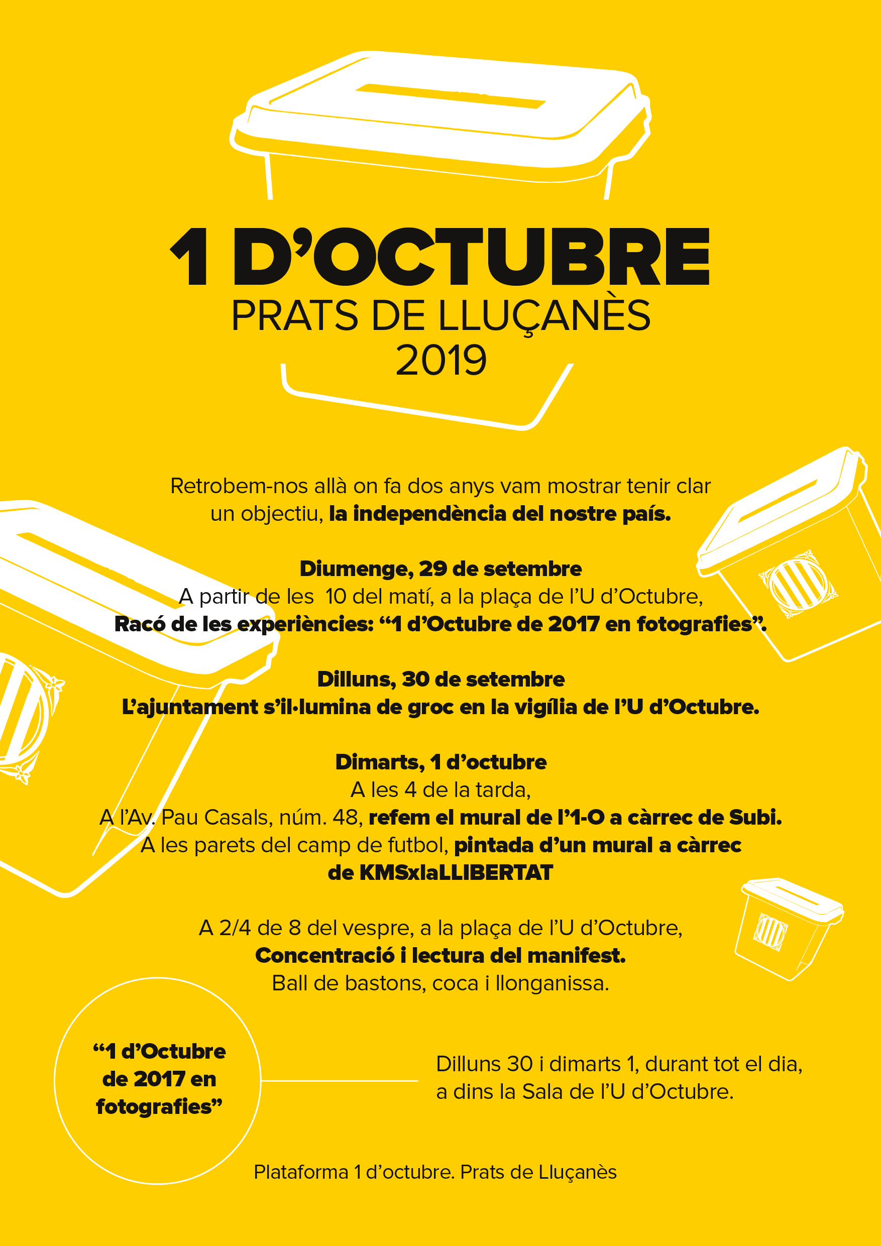 Amb aquest programa d’activitats es vol retre homenatge al compromís amb els valors democràtics demostrats pel poble i entitats de Prats, de la comarca i del país durant la celebració del referèndum d’autodeterminació.