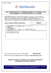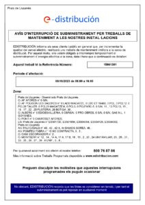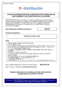 Inici General Tall de subministrament elèctric a Prats de Lluçanès (8 d’octubre de 2023) General Tall de subministrament elèctric a Prats de Lluçanès (8 d’octubre de 2023) 06/10/2023 598 Facebook Twitter WhatsApp Email Telegram Notícies relacionadesMés de l'autor General La màgia dels Reis d’Orient omple d’alegria i il·lusió els carrers i les llars de Prats de Lluçanès General S’obre la consulta pública prèvia per a l’elaboració de la nova ordenança de tinença, protecció i control d’animals al municipi General Sessió informativa del pla “L’Administració a prop teu” a Prats de Lluçanès General Es construeixen una trentena de nous columbaris i s’adequa el cementiri municipal per Tots Sants General La xarxa mòbil de nova generació millorarà la connectivitat de Prats de Lluçanès amb l’arribada del 4G i el 5G Esports El diputat d’Esports de la Diputació visita Prats de Lluçanès i coneix els projectes esportius de futur del municipi