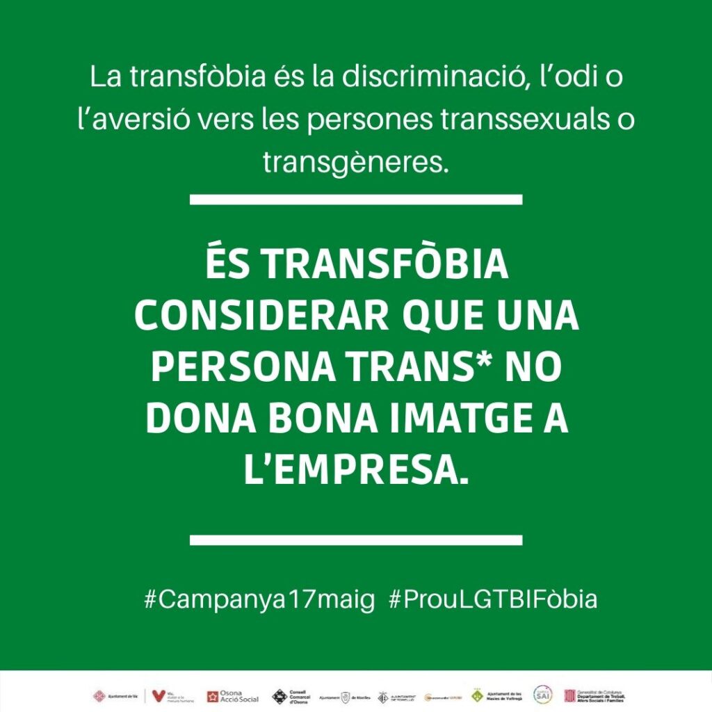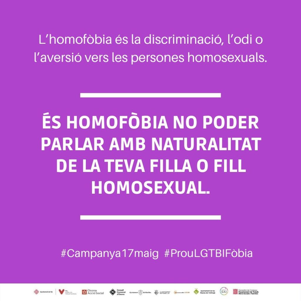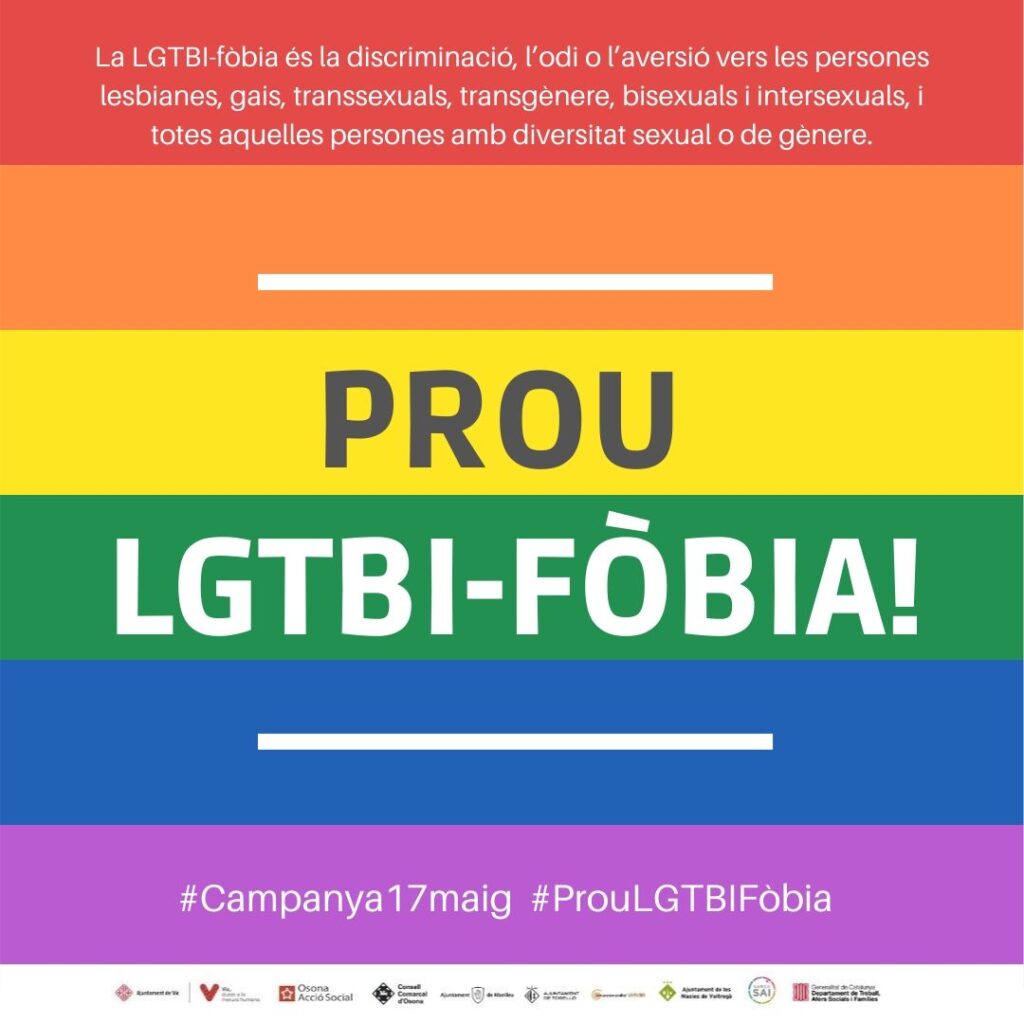 Per aquest motiu, al llarg de tota la setmana s’han compartit diverses imatges a les xarxes socials per conscienciar a la població dels conceptes lligats amb la LGTBIfòbia i que cal combatre conjuntament.