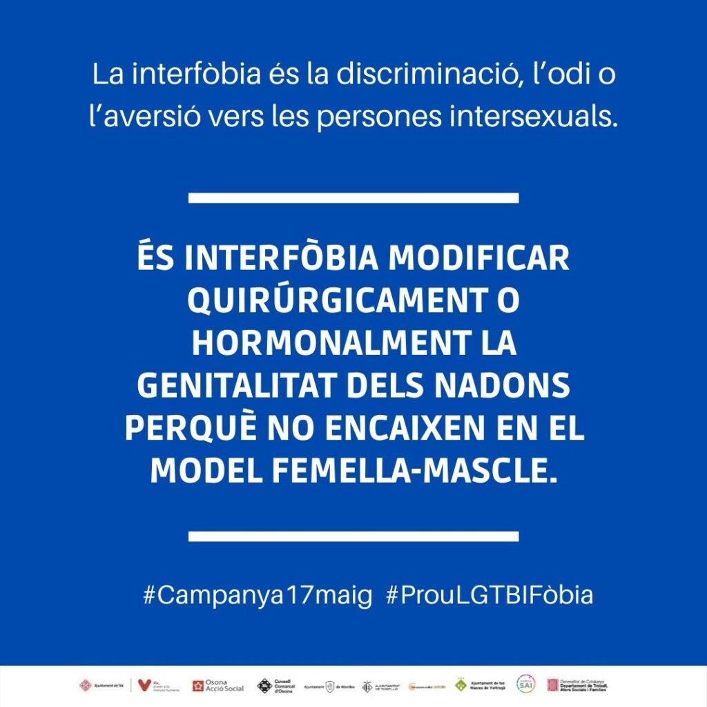 El 17 de maig se celebra el Dia Internacional contra l’LGTBI-fòbia, terme que es refereix a les agressions físiques, intel·lectuals i morals i les discriminacions socials contra les persones per raó de la seva orientació sexual, identitat o expressió de gènere. La data recorda que fa només 30 anys que l’Assemblea General de l’Organització Mundial de la Salut (OMS) va eliminar l’homosexualitat de la llista de malalties mentals.