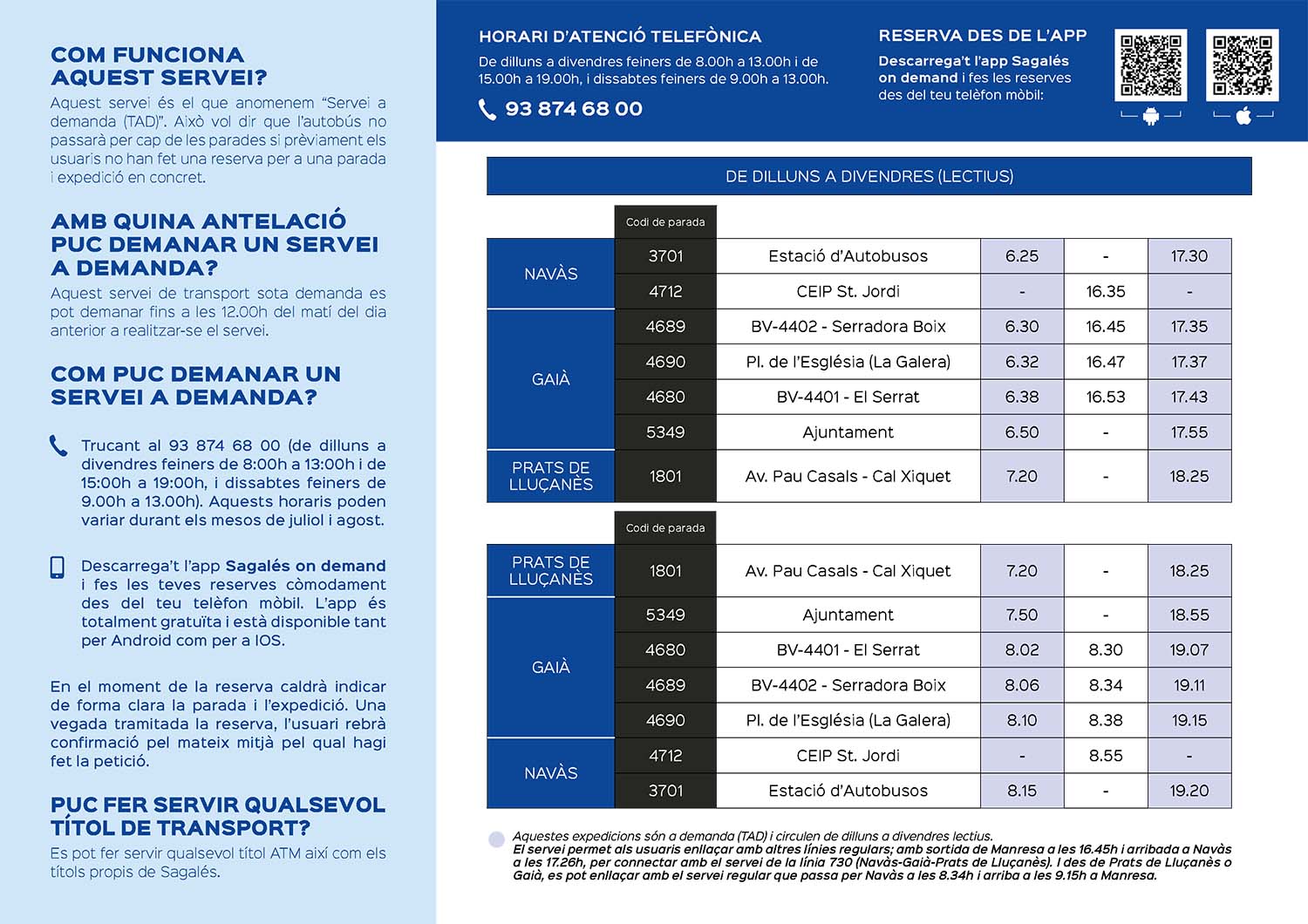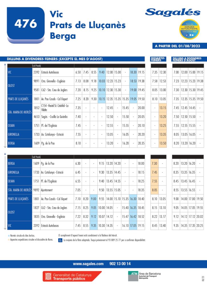 - Podeu consultar els horaris de les línies regulars de Segalés en aquest enllaç.