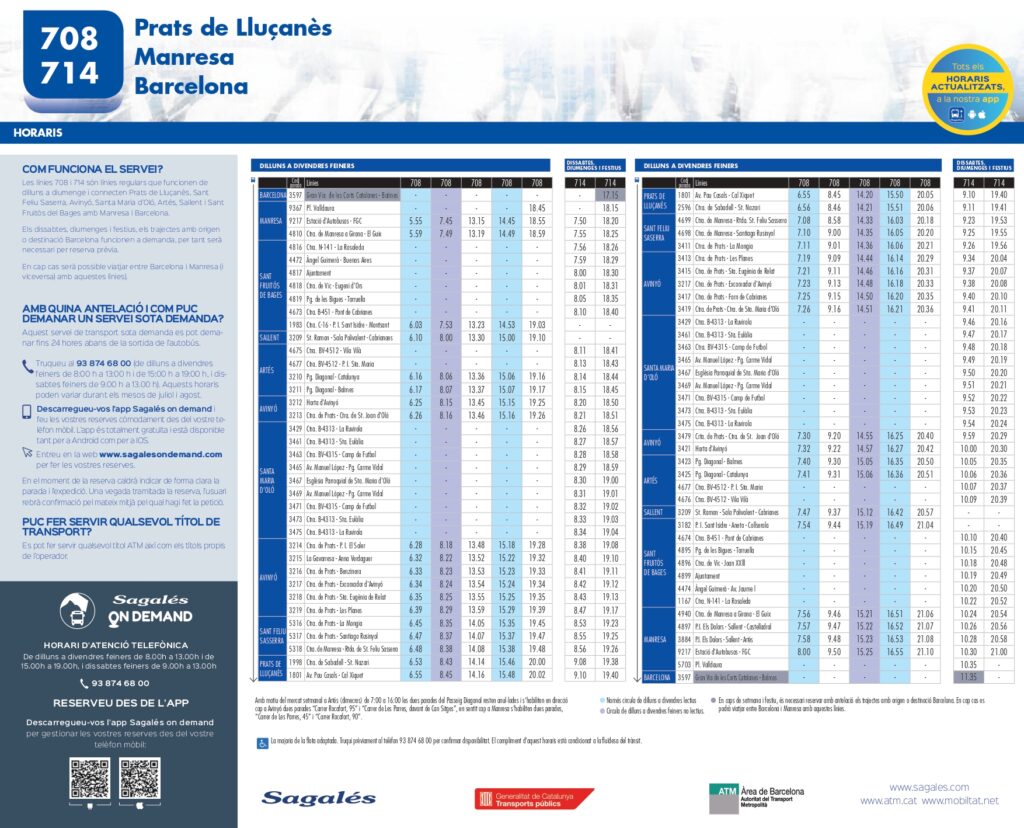 Línies 708 i 714 (Prats – Barcelona). Consulta els horaris aquí