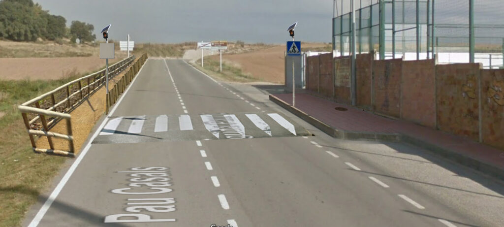 Aquest pas de vianants podria ser un pas elevat, ben il·luminat i disposar de senyalització lluminosa. Caldria millorar la senyalització d’entrada al poble amb senyals lumínics de límit de velocitat i de pas de vianants, per tal que els vehicles no entrin a gran velocitat, com passa actualment.