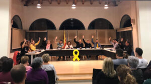 El text, presentat conjuntament pels quatre grups polítics amb representació al consistori, ha estat llegit pels 11 càrrecs electes de l’Ajuntament i s’ha aprovat unànimement.