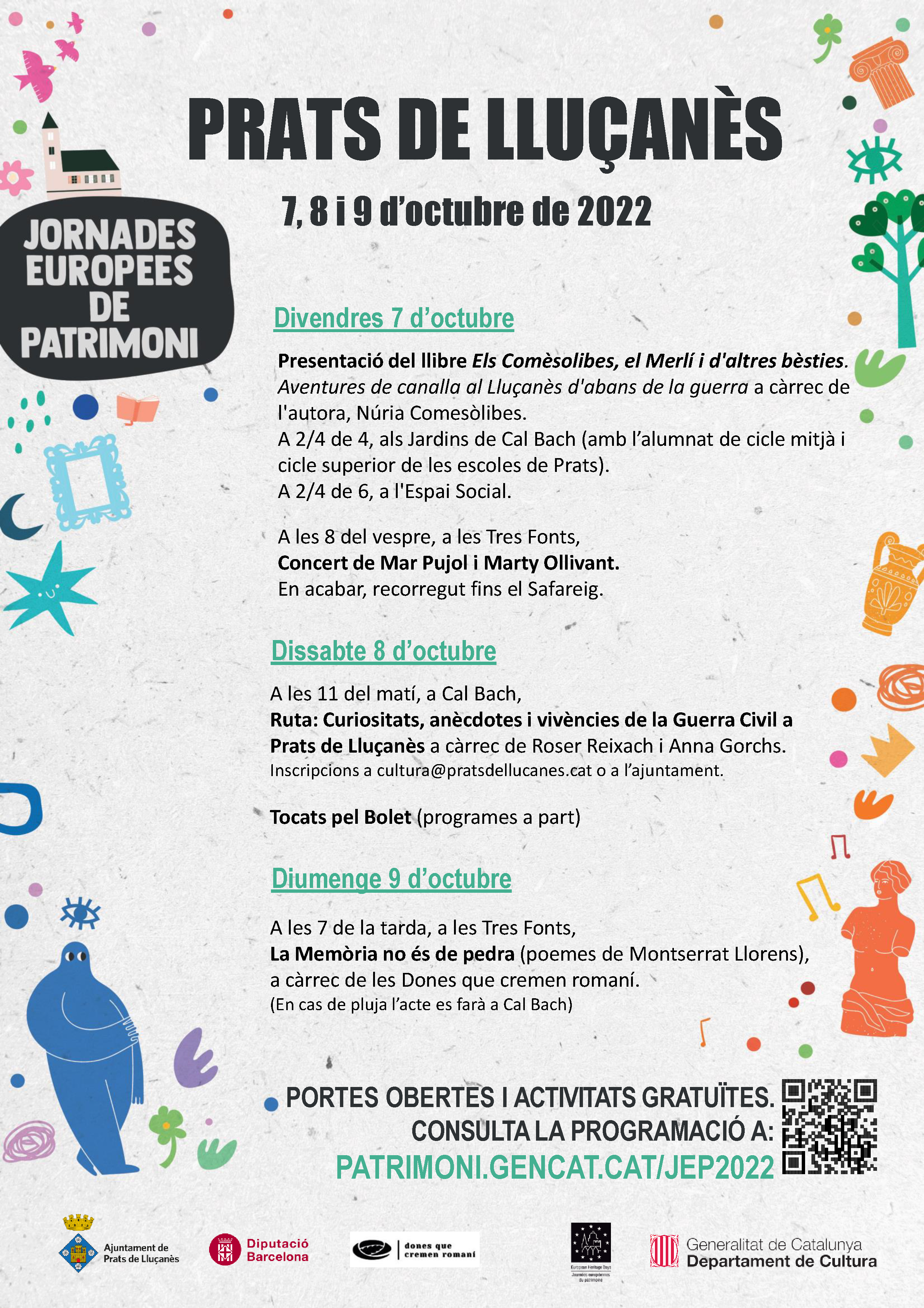 Els dies 7, 8 i 9 d’octubre, Prats se suma a les Jornades Europees de Patrimoni que se celebraran durant el cap de setmana arreu de Catalunya.